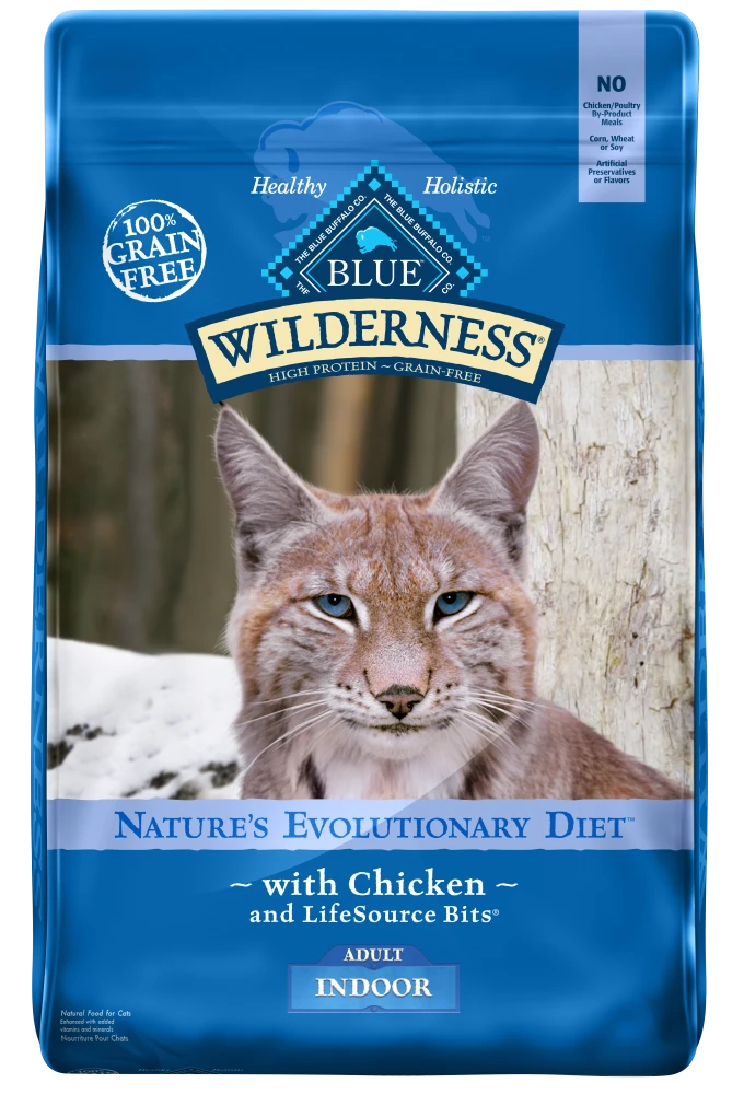 - GRAIN FREE INDOOR CAT FOOD: BLUE Wilderness grain free indoor cat food is specially formulated to help meet the unique needs of indoor cats to support healthy weight and healthy digestion without the grains that contain gluten.