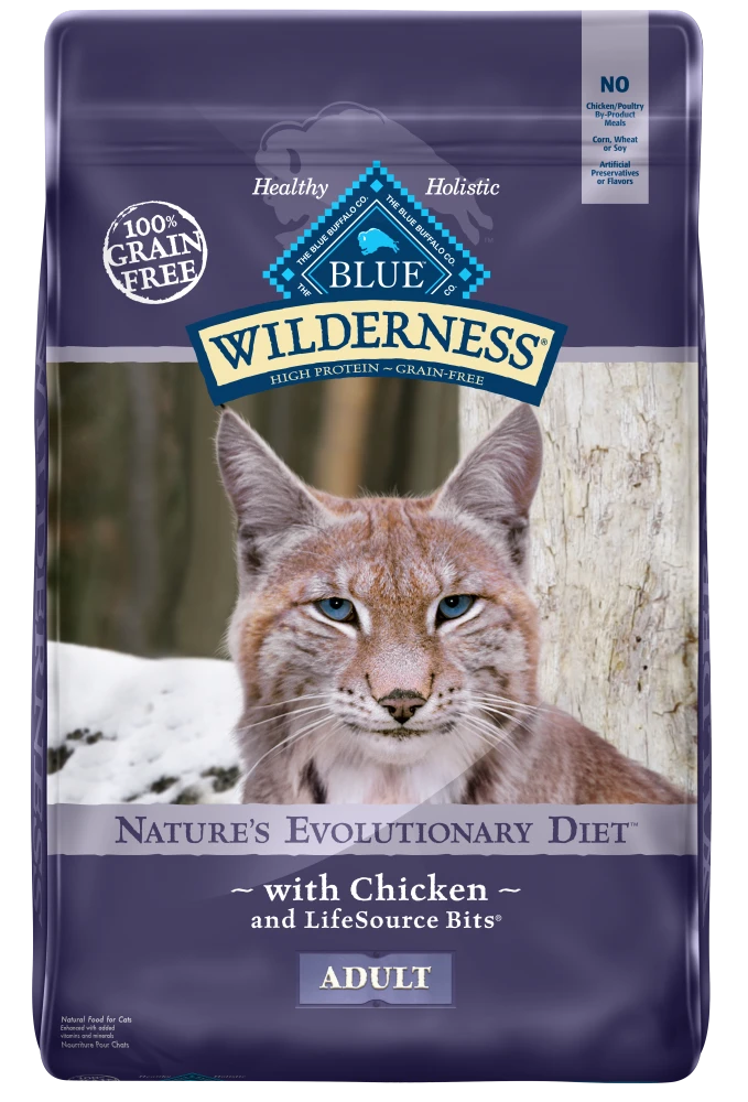 Inspired by the diet of the lynx, a tireless and legendary hunter, BLUE Wilderness is a protein-rich, grain-free food that contains more of the delicious meat cats love. BLUE Wilderness is a product of the Blue Buffalo company. Based in the United States, Blue Buffalo makes premium-quality pet foods featuring real meat, fruit and vegetables.