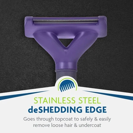 - REMOVES LOOSE HAIR: Stainless steel deShedding edge reaches through topcoat to safely and easily remove loose hair and undercoat without damaging topcoat or cutting skin*