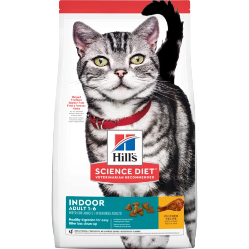 Hill’s® Science Diet® Adult Indoor cat food is formulated to meet the nutritional levels established by the AAFCO Cat Food Nutrient Profiles for maintenance of adult cats.