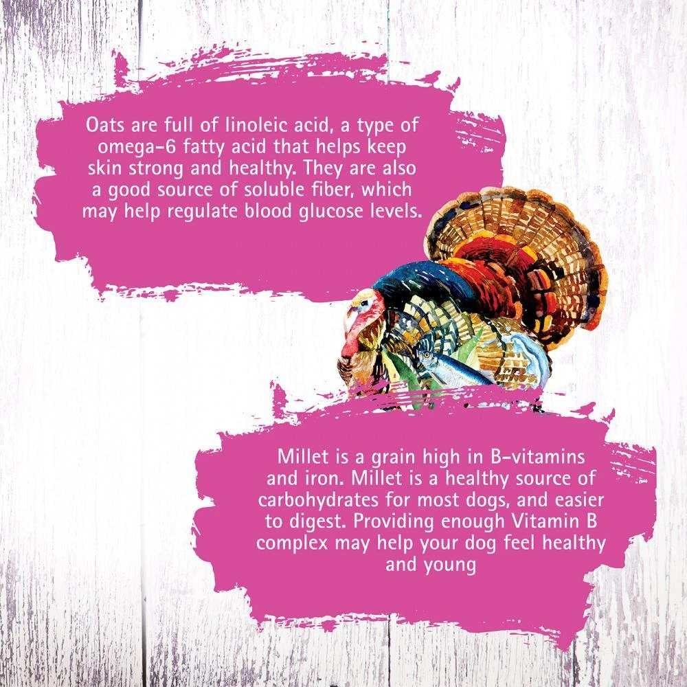 Turkey, Herring Meal, Oats, Milo, Millet, Ground Flaxseeds, Turkey Fat (Preserved With Mixed Tocopherols), Natural Flavors, Potassium Chloride, Choline Chloride, Taurine, Fructooligosaccharide, Salt, Dandelion Greens, Minerals (Zinc Proteinate, Manganese Proteinate, Copper Proteinate, Magnesium Proteinate, Sodium Selenite, Calcium Iodate), Vitamins (Thiamine Mononitrate, Niacin Supplement, Vitamin E Supplement, Calcium Pantothenate, Pyridoxine Hydrochloride, Riboflavin Supplement, Biotin, Vitamin A Supplement, Vitamin B12 Supplement, Vitamin D3 Supplement, Folic Acid)