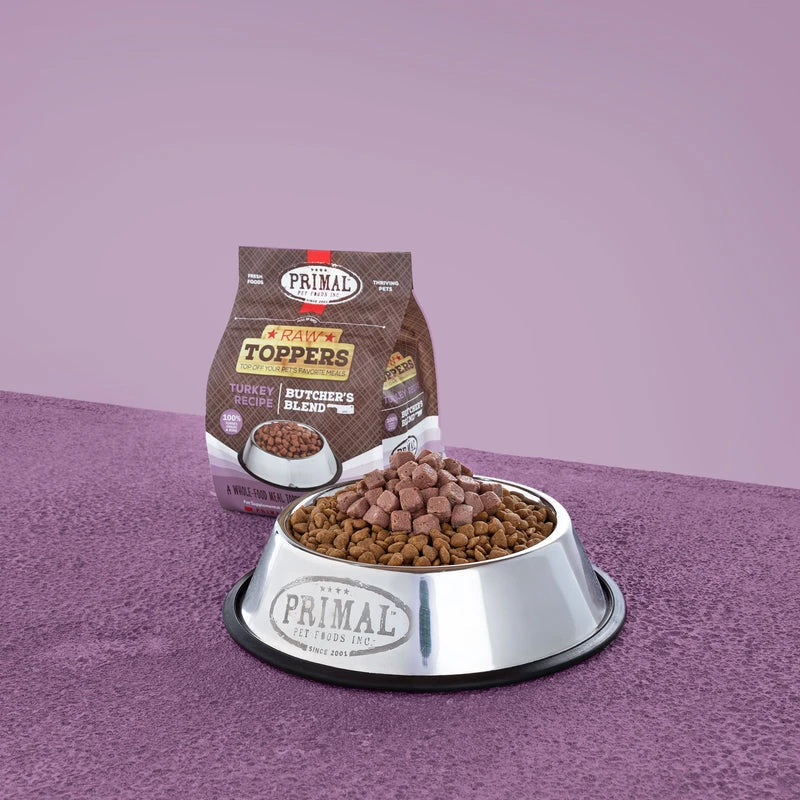 To serve, simply remove bag from your freezer, pour the appropriate amount over your pet’s regular food, and allow to thaw. Only serve Primal raw foods when completely thawedβfrozen foods can be difficult for animals to digest. Never microwave any pet food.