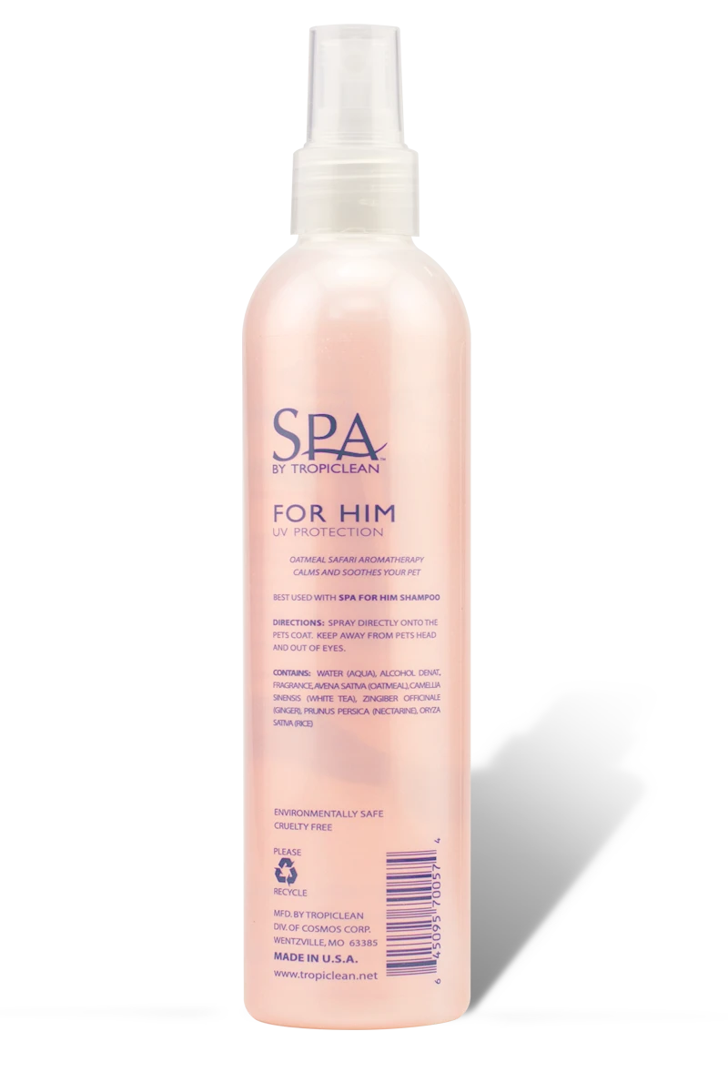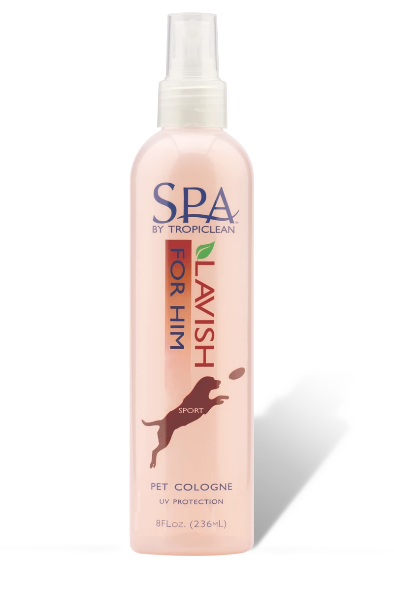 SPA by TropiClean Lavish For Him Pet Cologne helps neutralize stinky pet odors with the clean fragrance of bergamot, basil, eucalyptus, and sandalwood. Stop pet stink at the door with just a few spritzes of this invigorating cologne.