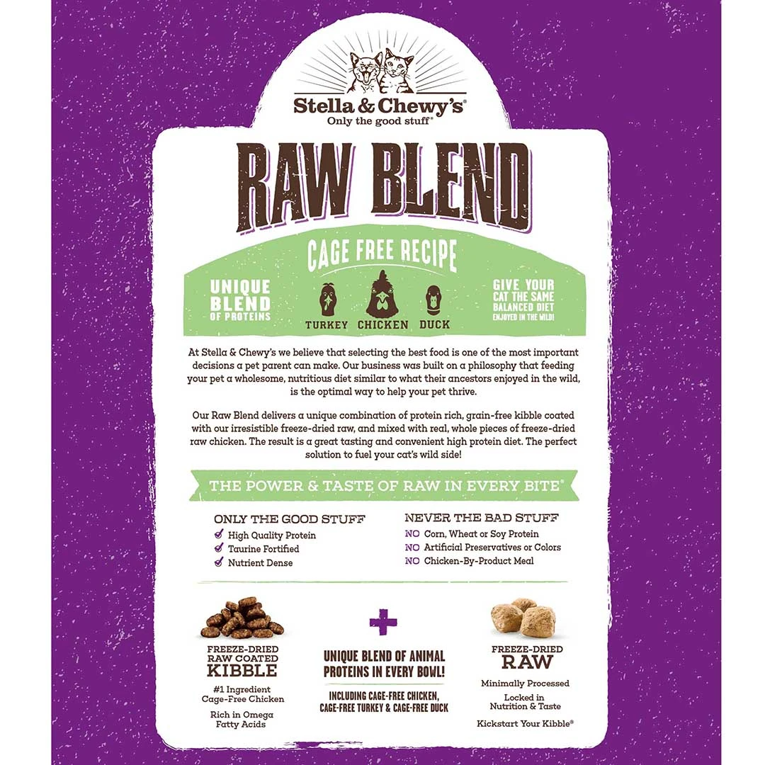 Super-premium, high-protein kibble solutions that are carefully coated with our irresistible freeze-dried raw recipe to fuel your cat or kittenās wild side. Recipes include responsibly sourced proteins, guaranteed probiotics for optimal digestion, and are rich in omega fatty acids for healthy skin and coat. Our Raw Blend recipes include real freeze-dried raw pieces mixed in.