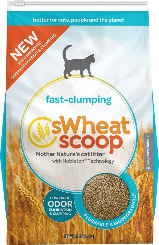 sWheat Scoop is an all-natural cat litter made from naturally renewable wheat. With no harmful ingredients typically found in clay litter, it is a no-worries kind of cat litter. The natural wheat enzymes neutralize odor on contact, and wheat starches clump firmly for easy scooping. Add in that itβs 100% biodegradable, and youβve got yourself a pretty sWheat litter for you and your furry friends.