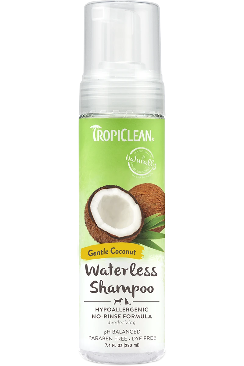 No time for a bath? No problem. TropiClean Hypoallergenic Waterless Shampoo is here to the rescue! This easy-to-use, no-rinse formula provides a nourishing clean and leaves your pet looking and smelling fresh between baths. Simply massage cleanser into the coat and brush it out. Made with a gentle blend of cucumber and oatmeal extracts, this hypoallergenic formula is safe for puppies, kittens, and pets with sensitive skin. With no water required, TropiClean waterless shampoos are the perfect on-the-go solution for adventurous pets who love going to the park, beach, and on road trips.