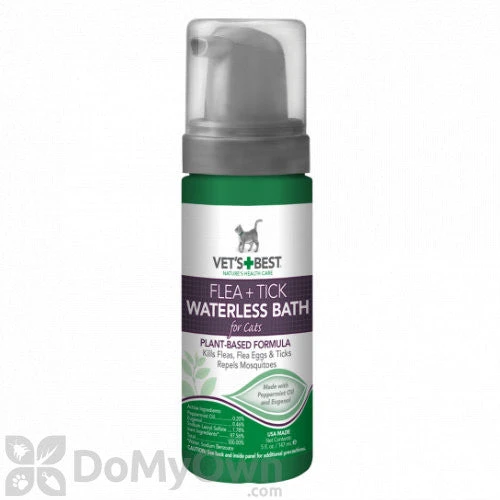 Vet’s Best Flea and Tick Waterless Bath Foam Dry Shampoo for Cats is an excellent, easy-to-use bath foam which eliminates ticks, fleas, and flea eggs by contact without the use of harsh chemicals. This waterless shampoo offers a quick and easy, fast-drying, flea and tick bathing solution for unwilling and water-averse cats. Simply apply to your cat’s fur and comb away – no need for rinsing! It also features a unique formula containing 100% natural essential oils and plant-based properties such as eugenol from clove plants, and peppermint oil. For a complete protection against pesky parasites, this bath foam’s formula also effectively repels mosquitoes, while deodorizing your cat’s coat with a calming fresh scent without any added fragrance. A great natural alternative for chemical-based products, meaning you can use this product all year round. Safe for use on cats and kittens that are 12 weeks old or older when used as directed. Proudly made in the USA. Sold in 5 oz. bottles.