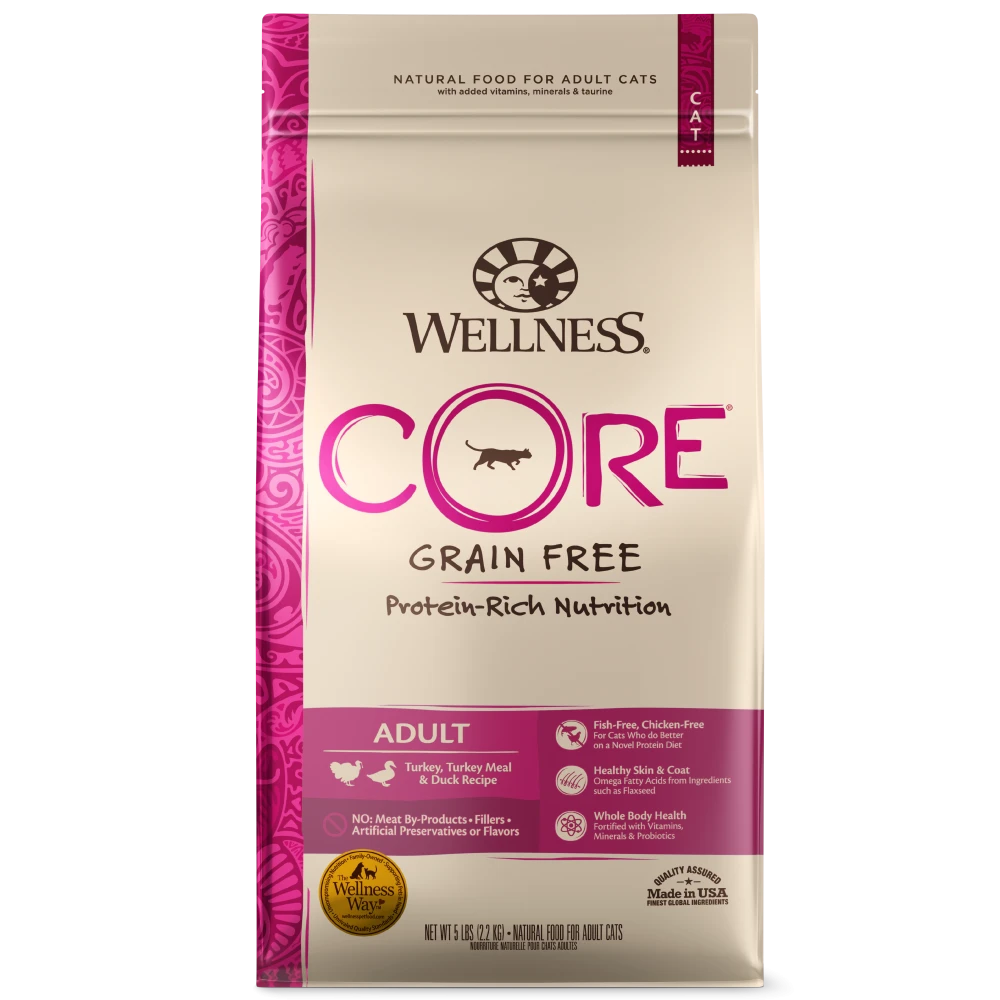 Wellness CORE Grain Free Natural Turkey and Duck Dry Cat Food is perfect for cats who love the taste of poulrty but can’t have chicken. This chicken free recipe is made with delicious deboned turkey and duck that will have your cat excited for meal time. Not only is this protein-focused recipe great for keeping them full and satisfied but it also has two different Omegas to help moisturize skin and prolong healthy coat growth.